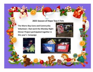 The holiday season is our busiest—and most heartwarming—time of year. From wrapping toys to delivering food baskets, the Morro Bay Lions make sure no neighbor is forgotten. In these pictures, you’ll see members sorting gifts, sharing holiday meals, and creating moments of comfort for families who need it most.
