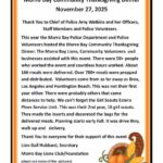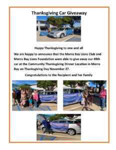 New to the 2025 Community Thanksgiving Dinner will be the coordinating partnership between the Lions Club and the local Morro Bay Police Department. Once again, we anticipate at least 800 meals to be served which will include home delivery as well as walk-up and drive-through service.