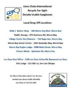 Morro Bay Lions support the Lions Eye Foundation which provides specialized eye care & cataract surgeries at no cost to patients referred by the club. Clarity changes everything. In these photos, you’ll see Lions volunteers conducting SPOT vision screenings at local schools, fitting students with glasses, and celebrating those first moments of clear sight. Each pair of glasses represents a brighter future, a better learning experience, and a child who can fully engage in the classroom.